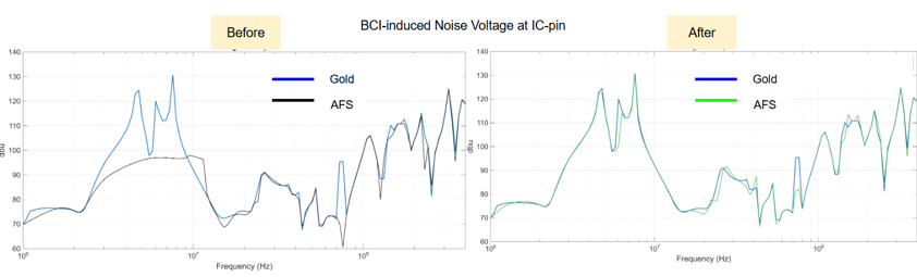 The following example illustrates a representative Bulk Current Injection (BCI) laboratory setup, demonstrating that traditional AFS technique fails to detect low-frequency resonances, particularly those occurring below 10 MHz. In contrast, an initial-point selection strategy informed by prior circuit-level simulations effectively captures these critical features with higher accuracy, thereby improving the reliability of the frequency-domain analysis.