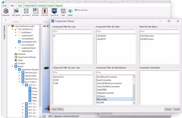 Simulate standardized setups such as CISPR 25 and ISO 11452 without manually building laboratory models. This enables full test-environment simulation directly from design data.